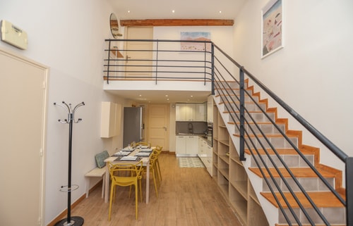 Situé en plein cœur du Suquet, ce duplex de 50 m² se compose d’une cuisine toute équipée ouverte sur un agréable salon, de deux chambres et d’une salle de bain. Cet appartement peut accueillir confortablement jusqu’à 6 personnes. Très belle décoration moderne et lumineuse.